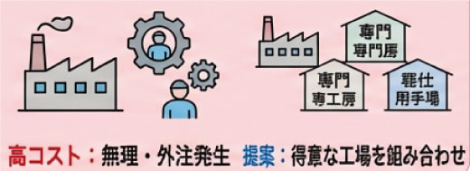 工場によって得意不得意があり、設備の違いも大きくあります。その工場でできない事を見積もりしてくれた場合は、外注にだしているか無理をしているので、やはりコストがあがります。「例えば家具の扉にこだわりたい」「天板をステンレスにしたい」など知識さえあれば、それぞれの得意な工場で作って、現場で組み合わせる事で無駄なコストを省けます。