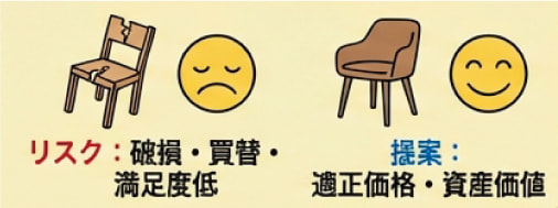 海外の通販サイトや検索で、価格のみで家具を選ぶのは、【そんなに長く使う事はない】【人に見せる事などない】【自力でかっこよくできる】場合はいいかもしれません。しかし破損や買い替えのリスク、暮らしの豊かさを考えた時に、やはり適正価格というのは安価な家具より少し上にあるように思います。私どもは、お客様のご予算の中の、最適価格でご提案させていただきます。また資産性のあるデザイナーズや一枚板などもご相談ください。