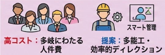 ただ置くだけではないインテリアの計画で、人件費はかなり大きなボリュームになってきます。運送会社、大工職人、内装職人、電気職人、設計士、現場管理、営業。それぞれの諸経費、交通費、、、もちろん、映画を撮るように、それぞれのプロフェッショナルを集めてやるのいいですが、例えばちょっとした内装工事はできる運送屋(逆もしかり)電工事の必要の有無、現場管理の必要の有無など、知識と人脈で余計なコストを省く事ができます。そのディレクションもおまかせください。