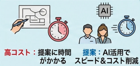 AIを使う事で、イメージや費用の共有、新しいデザインや知識の発見などが圧倒的にスピーディにできるようになりました。これにより、目に見えない提案コストがかなり削減される事になります。今後どうなっていくかはわかりませんが、私どもは形のないデザインの共有のために、できるだけ最新のAIに触れるようにしていきます。しかし、どれだけAIが進歩しても、デザイナーのアイデアやチーム力、プランを実現して住まいに落とし込む職人の力が大事であると考えています。